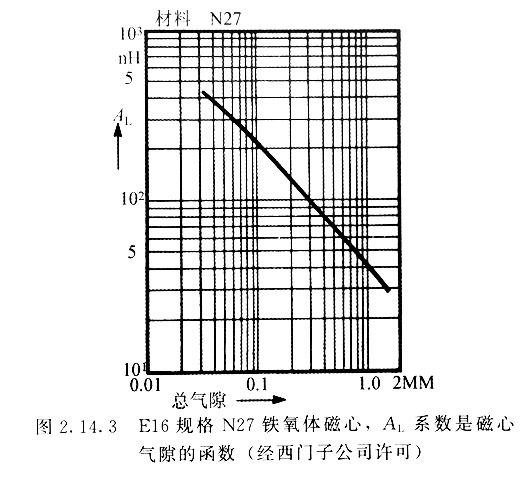根據圖2。14。3(為E16磁心建立的數據),可以得到A1=59nH時需要的氣隙。