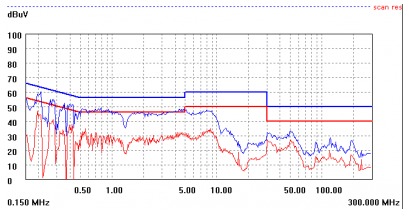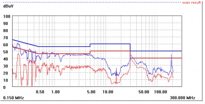 | 一款48W(36V/1.33A)電源適配器整改EMI案例,僅僅是調(diào)整了肖特基吸收就把30-40M壓下來。 115Vac低壓30M紅色頂線 ![]() 230Vac高壓30M紅色也頂線 ![]() 調(diào)整肖特基吸收后: 115Vac低壓,走勢圖非常漂亮 ![]() 230Vac高壓,走勢圖非常漂亮 ![]() 45.安規(guī)距離一覽表,篇幅問題只能排這么多標(biāo)準(zhǔn) 以上僅供參考,針對反激無PFC電路適用。 46.來一個(gè)花了很多錢整改的一個(gè)12V3A電源適配器案子,加濕器,這幾年加濕器很流行,相信有不少工程師有碰到類似的問題。 這個(gè)項(xiàng)目配水泥電阻,輻射測試余量有6個(gè)dB以上,一旦接上加濕器一起測試輻射,就..就..就超了,這是很多工程師不愿意發(fā)生的意外。 整改過程: 1.輻射超的那張圖沒打印,這是肖特基增加吸收47R+102P的測試結(jié)果,余量只有2.01dB 2.這個(gè)是加大Y電容,由471P改為102P,發(fā)現(xiàn)反而變差了,余量只有0.12dB,兄弟,很尷尬有沒有? 3.Y電容改回去,再改小一點(diǎn),由102P改回101P,余量2.68dB,看來不能再小了 4.試一下減輕肖特基吸收,電阻47R改為100R,意料之中的結(jié)果,余量變小了,1.01dB 5.輸出正負(fù)極并一個(gè)103P電容,余量2.53dB,此刻樓主已經(jīng)變得緊張了,因?yàn)榘嘿F的測試費(fèi)用在腦子里轉(zhuǎn)著。 6.來個(gè)猛一點(diǎn)的,加重肖特基吸收,電容102P改到472P,余量沒了,超了0.65dB,慌了 7.手忙腳亂的把肖特基吸收還原,電容改小到471P,余量2.23dB 8.肖特基吸收使用22R+102P,余量1.92dB,發(fā)現(xiàn)一直在這個(gè)邊緣徘徊,腦子現(xiàn)在是亂的 9.原邊RCD吸收100R改為200R,余量1.76dB,無語了,開始出汗了 10.原邊RCD吸收,電阻200R改到0R,余量1.03dB,發(fā)克!越整越差了,佛都有火了 11.休息了一下,喝了杯咖啡,精神來了,這時(shí)已經(jīng)耽誤了20分鐘了,20分鐘可是浪費(fèi)了幾百塊RMB。 腦子清醒后開始干活,在輸出加了個(gè)小共模T9*5*3的,量了下感量470uH,余量2.66dB,發(fā)現(xiàn)頻段變了,說明很有效果。 12.輸出共模增加了5Ts,感量900uH,余量3.85dB,不錯(cuò)不錯(cuò),開始哼起了小曲~ 13.改變輸出小共模的繞法,改成雙線并繞12Ts,感量900uH,余量有4.25dB了,任務(wù)完成 一共13張整改圖,一張不漏的,整改時(shí)間剛好一個(gè)半小時(shí),送給那些跟我一樣有類似的項(xiàng)目一個(gè)參考。