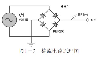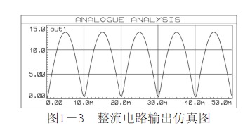 交流電壓設(shè)定如圖1-4所示,將電壓輸入設(shè)置為15V,頻率設(shè)置為50Hz,模仿市電經(jīng)變壓后的低壓交流電源適配器輸入。