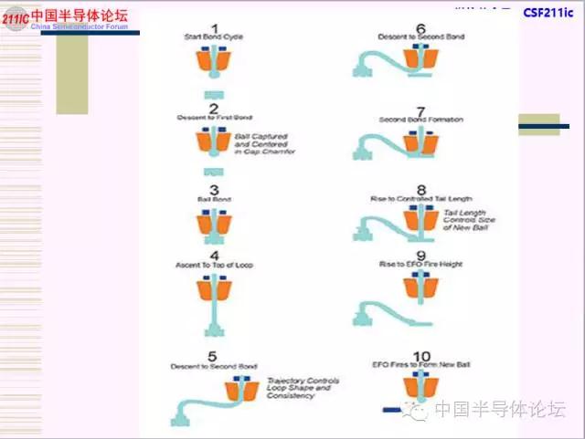 目的:將晶粒上的接點用金線或者鋁線銅線連接到導(dǎo)線架上之內(nèi)引腳,從而將IC晶粒之電路訊號傳輸?shù)酵饨纭?br />