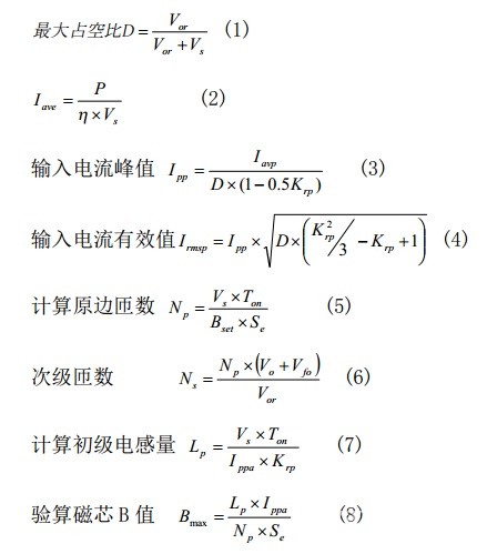 D=Vor/(Vor+Vs),D為占空比,Vor反射電壓,Vs低輸入電壓(此電壓一般為輸入的交流Vac*1.2,因?yàn)檎骱蟮碾娊怆娙莶粫?huì)無(wú)窮大)。