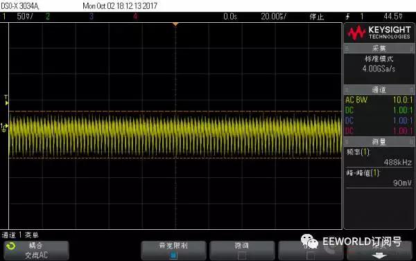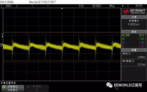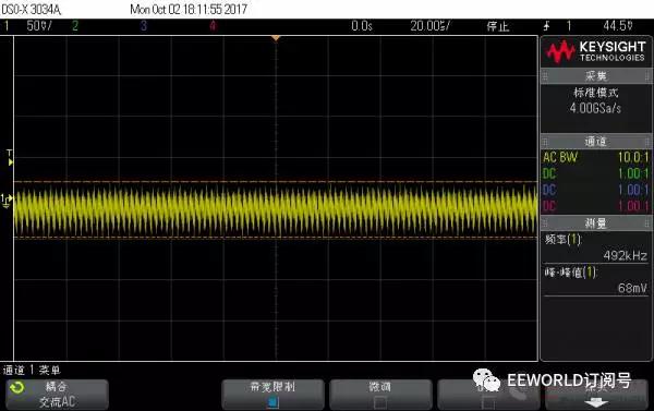 先說說測試之前的預期或者認識: Anker 的新款能賣這么貴,毫無疑問紋波比老款控制的好; 蘋果的充電器是目前較常用的,覺著能賣這么貴,質量自然是不錯的; 黑色的 Bigben,是在淘寶上買的,說是英國貨,但google到的資料很少,的幾條記錄都是指向國內的淘寶...這個充電頭質量還行,原來試過同時給ipad和充電寶充電,3.4A也是妥妥的!但是有“蜂鳴聲”:手機充滿了,電源輕載就有蜂鳴聲;聲音微弱,不過留意聽還是可以聽到的;甚至,空載的時候從插座拔下來,把它放到耳邊,能清楚的聽到蜂鳴聲過一段時間才消失;本以為是個別現象,后來又買了一個還是同樣的問題!??!這個“蜂鳴聲”本不大,但是一旦聽到就沒法忽略,遂閑置很少再用 堅果pro的18W充電器,試過給堅果手機充電,快充支持的很好,但是帶兩個充電頭不方便,也很少用 “終結者”移動電源是我親見過較強大的移動電源,QC3.0輸入、輸出,甚至支持一些筆記本適配器直接充電,也可以給ipad 2.4A充電,其他的電壓、電流、溫度、氣壓計、電子羅盤...應有盡有!這個是我的出差必備 廢話不再多說,下面開始上圖 測試條件 負載:1A 測試時僅采用1個4.7Ω功率電阻,2A 測試時在前者基礎上并聯 4Ω 電阻 (考慮導線壓降,實際電流分別為大于0.9A,和大于1.9A) 示波器:交流耦合,20us/div , 50mV/div, 20M 帶寬限制,1:10衰減探頭 下面正式開始測試 PS. 由于是負載端直接測量,測量結果可能沒法和正規測試相對比,在這里僅做個橫向對比 Anker 新款 充電器 1A 帶載波形