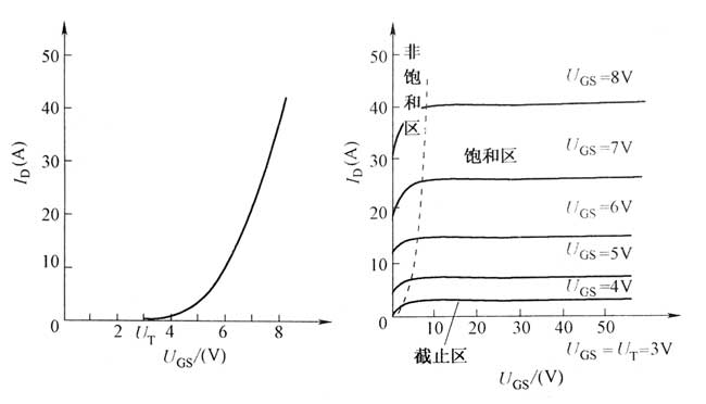 (1)靜態特性 其轉移特性和輸出特性如圖22所示