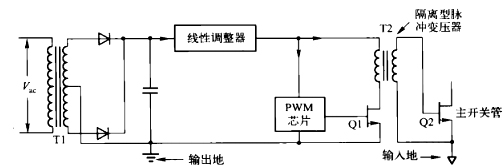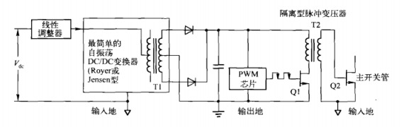 | 圖是三種實用的輔助電源適配器的簡化電路,其誤差放大器和脈寬調(diào)節(jié)器都置于PWM芯片內(nèi),PWM芯片接輸出地。 交流輸入的輔助電源適配器 圖所示是較簡單較常用的交流輸入軸助電源適配器電路。其中,工頻變壓器(通常為2~6W)由交流電網(wǎng)直接供電,其次級經(jīng)整流后接輸出地。很多廠家都可提供此類變壓器,其初級繞組也有抽頭,可滿足不同網(wǎng)壓輸入(15V20V、50Hz/60Hz)的要求。 ![]() 作為網(wǎng)壓供電的變換器,較簡單的輔助電源適配器就是一個小功率(2W)、60H的隔離變壓器,其次級帶整流器,產(chǎn)生以輸出地為參考的15V直流電壓。該變壓器串聯(lián)一個與輸出共地的輸出電壓為12V的線性調(diào)節(jié)器。 6VA電源適配器的典型尺寸為1.88n×1.56in×0.85in,2VA電源適配器的尺寸為1.88n×l.56in×0.65in它們的次級電壓等級很多,且通常每個電源適配器有兩個次級,可串聯(lián)起來為帶中間抽頭的全波輸出整流器供電,也可以并聯(lián)起來為橋式整流器供電。次級輸出經(jīng)整流和電容濾波得到直流電壓并根據(jù)設計要求將整流得到的直流電壓與輸出或者輸入共地。 整流得到的直流電壓會有和交流輸入電壓一樣的波動,通常為±10%。由于大多數(shù)PWM芯片在8~40V的直流驅(qū)動電壓下都能正常工作,因而整流得到的直流輸出無需穩(wěn)壓。但如果采取穩(wěn)壓措施,電路運行將更加安全,更具可預測性。因此,應選擇變壓器次級電壓使整流得到的直流電壓高于設計要求約3V,然后在濾波電容后面串聯(lián)一個不貴的TO220封裝的集成線性調(diào)節(jié)器,如圖所示。所設計的電路通常要達到這樣的要求:+12V穩(wěn)壓輸出,在輸出功率為3W且網(wǎng)壓向上波動10%時,效率能達到55%。 直流輸入振蕩式音頻產(chǎn)品充電適配器 電源適配器為直流時,變壓器次級沒有交流電壓,就無法簡單地通過整流得到以輸出地為參考點的直流電壓。圖所示的就是用于這種場合的常見電路。由直流供電的簡單的磁耦合型反饋振蕩器在次級產(chǎn)生以輸出地為參考的高頻方波。 ![]() 直流輸入的15v1a適配器。當沒有交流電壓,無法通過整流得到與輸出共地的直流電壓時,可用簡單的磁耦合反饋振蕩器作為DCDC變換器,提供與輸出共地的電壓,來驅(qū)動PWM芯片。其中,振蕩器由輸入直流電壓供電。輔助電源適配器的輸出電壓與輸入電壓成比例。如果主PwM芯片能夠接受波動在±10%以內(nèi)的驅(qū)動電壓,則無需輸人調(diào)節(jié)器。 次級的高頻方波經(jīng)整流和電容濾波后得到接輸出地的直流電壓。由于是高頻方波,次級的濾波電容比圖6。19所示的60Hz整流濾波器所需的電容小得多。 在這類電路中,整流得到的直流電壓通常與直流輸入電壓成比例。如果允許直流輸出電壓有±10%的波動,且采用有效的振蕩器,則該電路所需元件數(shù)量少,效率也高。很多振蕩器在輸出功率為3W時效率可達75%~80%。下面將以這類振蕩器中的 Royer電路為例進行討論。 如果要求輸出穩(wěn)壓直流,可在振蕩器前面串聯(lián)集成線性調(diào)節(jié)器,如圖所示,但這會使。效率下降約44%(若通信電源適配器的較大直流輸入為60V,則線性調(diào)節(jié)器會將其降低到35V—剛好低于通信電源適配器規(guī)定的較小電壓)。 如果用簡單的Buck調(diào)節(jié)器代替圖所示的線性調(diào)節(jié)器,則會稍微增加元件數(shù)量及成本,但在輸出功率為3W時效率可達70%甚至75%。