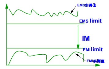 電源適配器EMI和EMS是相互對(duì)立的兩個(gè)方面,上圖說(shuō)明,設(shè)備的EMI極限值與EMS極限值之間應(yīng)該留有足夠的余量(IM),即設(shè)備EMI發(fā)射要小于其抗擾度(EMS),這樣設(shè)備才有足夠的抗干擾能力。另一方面,設(shè)備的EMI、EMS實(shí)測(cè)值應(yīng)該與極限值之間有足夠的余量。比如在EN300 386標(biāo)準(zhǔn)中,輻射發(fā)射的極限值(EMI Limit)為40dBuV/m,而輻射抗擾度極限值為130dBuV。由此可見,EMI、EMS極限值之間余量的重要性。