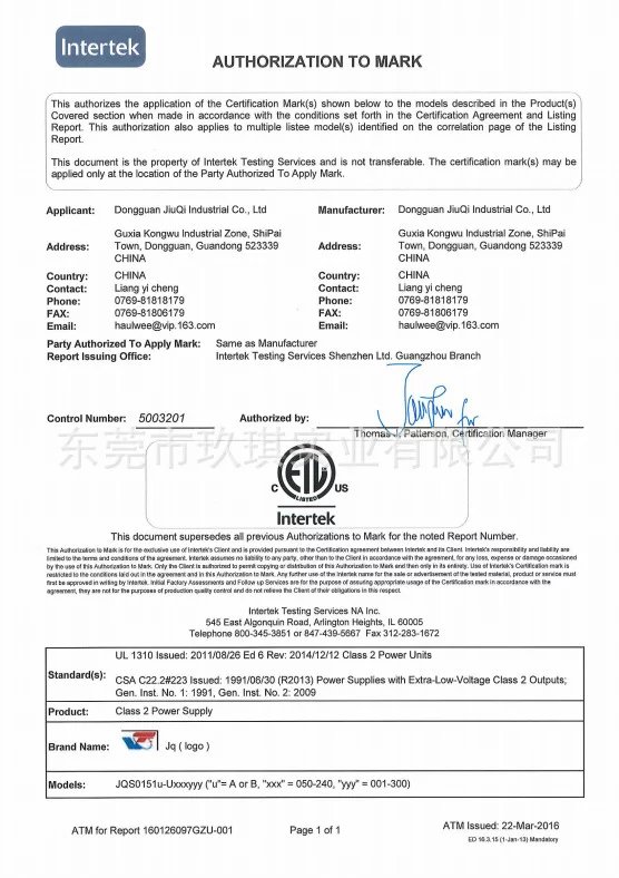 ETL、GS&CE、PSE、CCC、KC、BS、SAA、UC、STQC、FCC-VOC、CE-EMC、CB、ICES-003等認證
